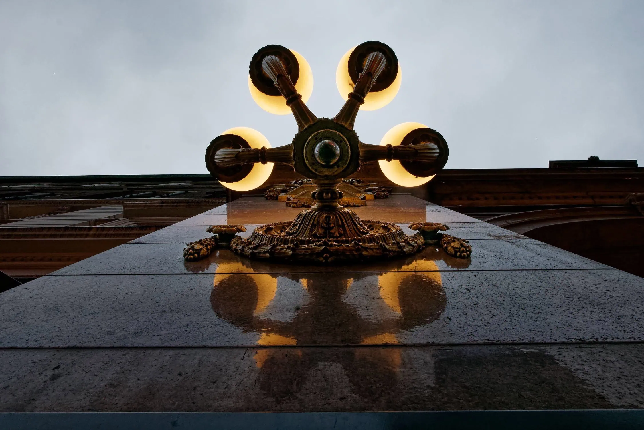 Ahead of me I saw that the facade featured ornamental sconces. They were graceful, detailed, and – in the grey flat sky – radiated a warm inviting glow. The instinct was to photograph what I understood the object to be conceptually – identified as a sconce. But what if I had never seen a sconce or any kind of lamp before. What would I understand the object to be? And how might I go about observing it?